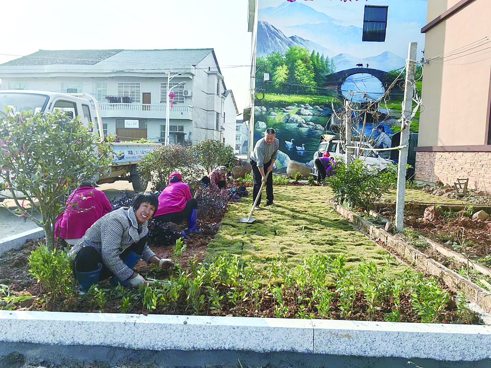 田心村居民修缮路边小花园。 陈洲平/ 摄