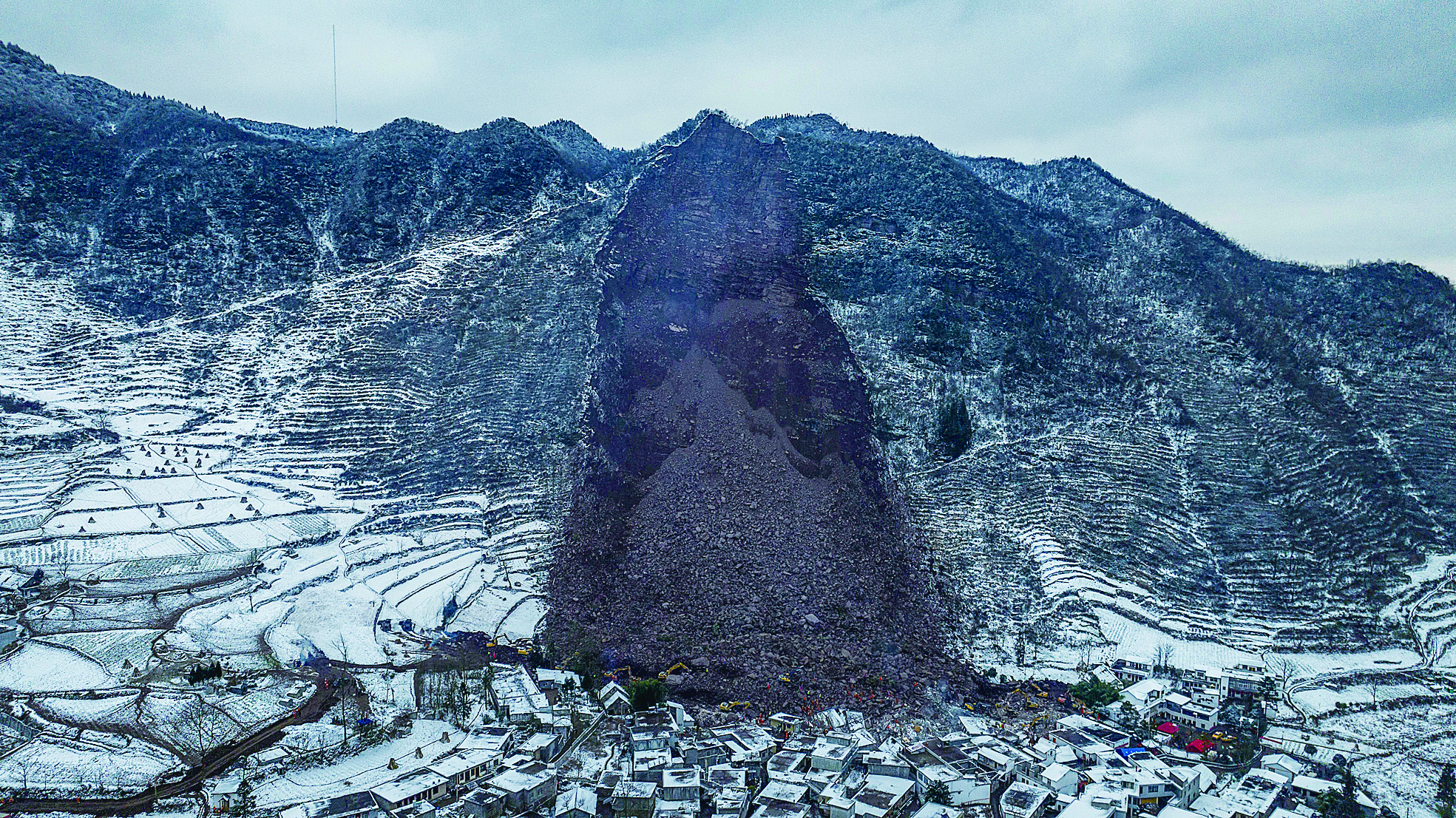 1月22日在镇雄县塘房镇凉水村拍摄的山体滑坡灾害现场(无人机照片)。
