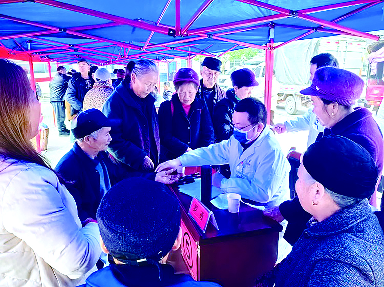 在石榴坪乡政府广场,前来就诊的群众络绎不绝。市中心医院派出了来自八个科室的九名专家,为当地群众进行健康体检、疾病诊治、中医针灸等多项服务,并免费发放价值万余元的药品。