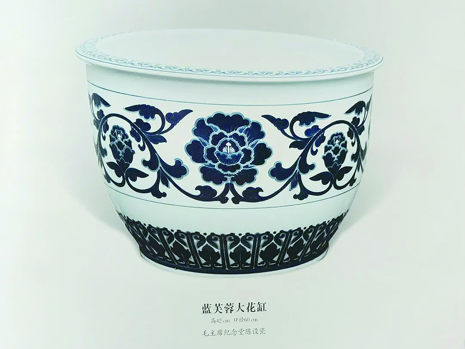 1976年9月9日,新中国开国领袖毛泽东与世长辞。醴陵人民怀着无比崇敬的心情创烧了毛主席纪念堂用瓷《釉下彩蓝芙蓉大花缸》,寄托哀思,常伴伟人。