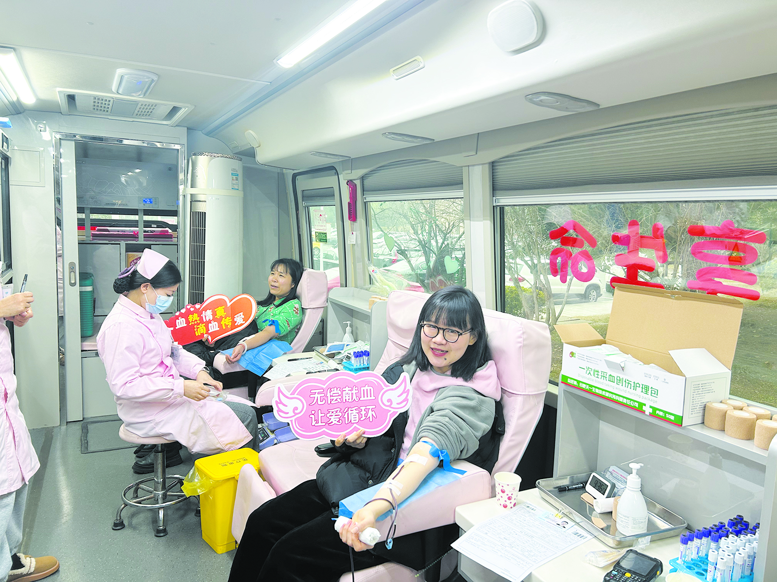 1月16日,在石峰区机关报告厅前坪的移动献血点,前来参加无偿献血的干部职工有序排队,经过登记、量血压、测血型等程序,完成体检后进行血液采集。据统计,此次活动有100余人报名,最终42人成功献血,献血共计13500毫升。