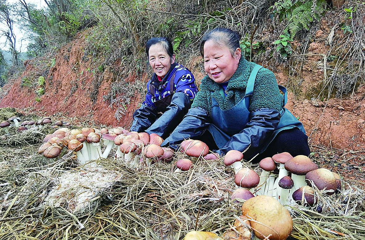 钻出“稻草被”的红松茸长势喜人。 株洲日报全媒体记者/邹怡敏 摄