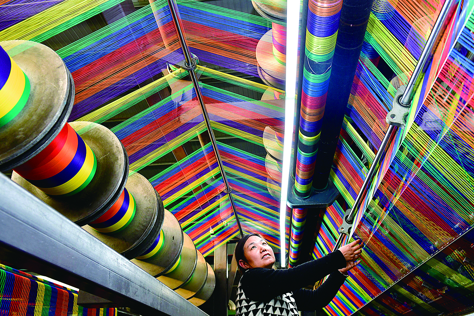 在山东省惠民县李庄镇一家绳网企业,工作人员在生产绳网产品(2023年11月22日摄)。 新华社发