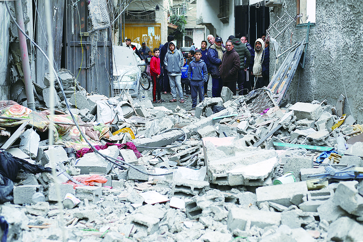 17日,在加沙地带南部城市拉法,人们查看以军空袭后的受损建筑。 新华社发(哈立德·奥马尔 摄)