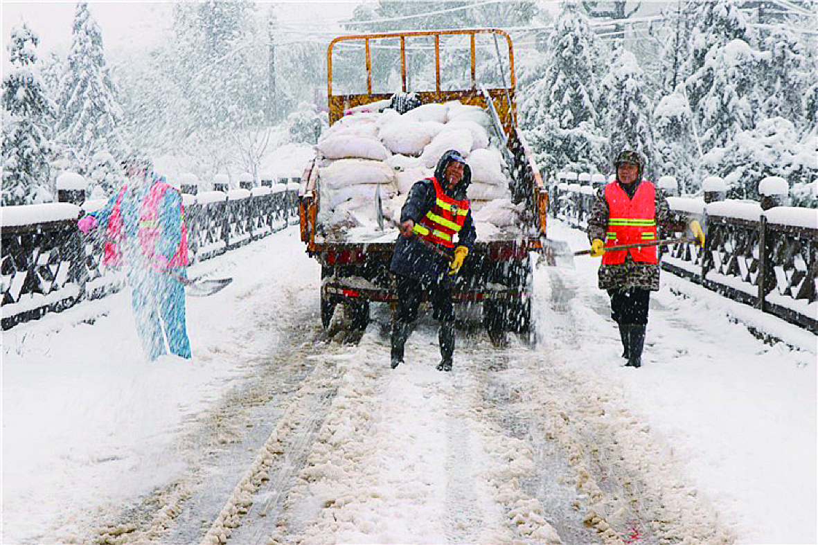 1月22日,气温骤降,低温雨雪天气让渌口区道路结冰,不少树枝被积雪压倒、压垮,阻碍了交通。渌口区交通事务中心第一时间启动抗冰保畅应急预案,出动车辆抛洒融雪剂,清理垮塌树枝,同时派人加大对桥梁、急弯、陡坡、事故多发点等重点路段的巡查频率,设置安全警示标志和防护设施,保障道路安全畅通。
