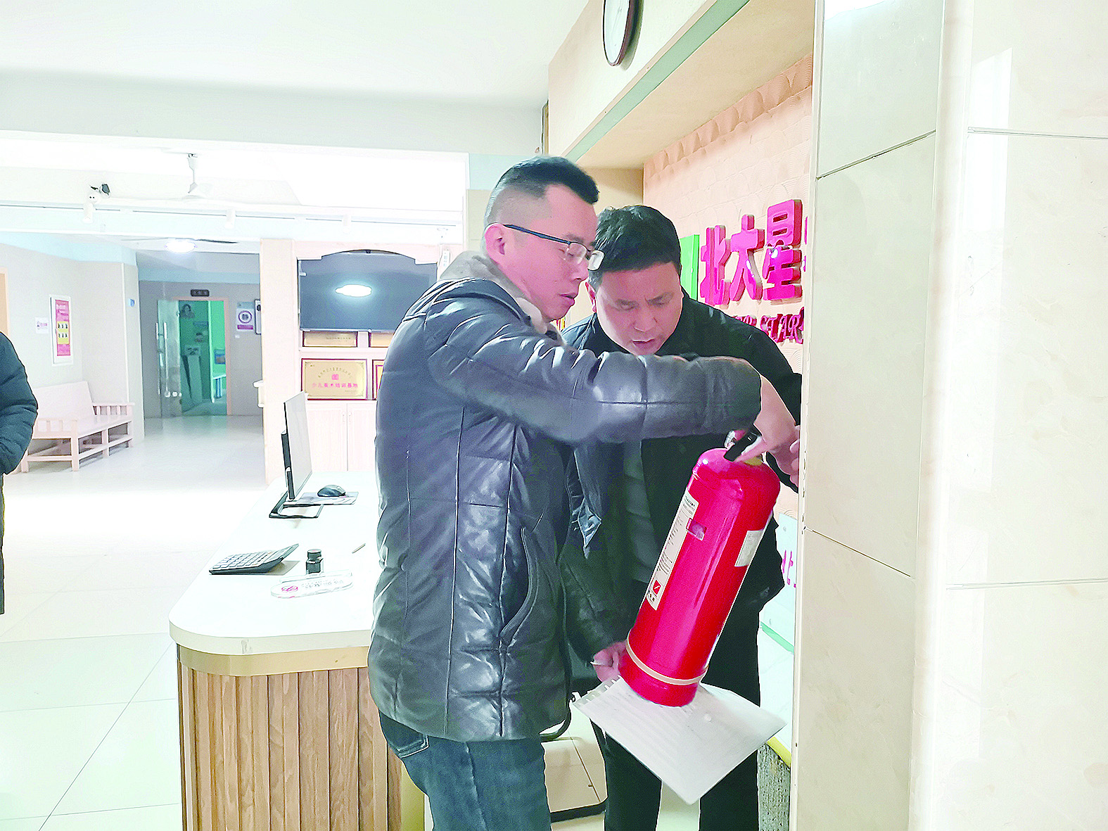 荷塘区执法人员对机构内消防设施进行检查。 受访单位供图