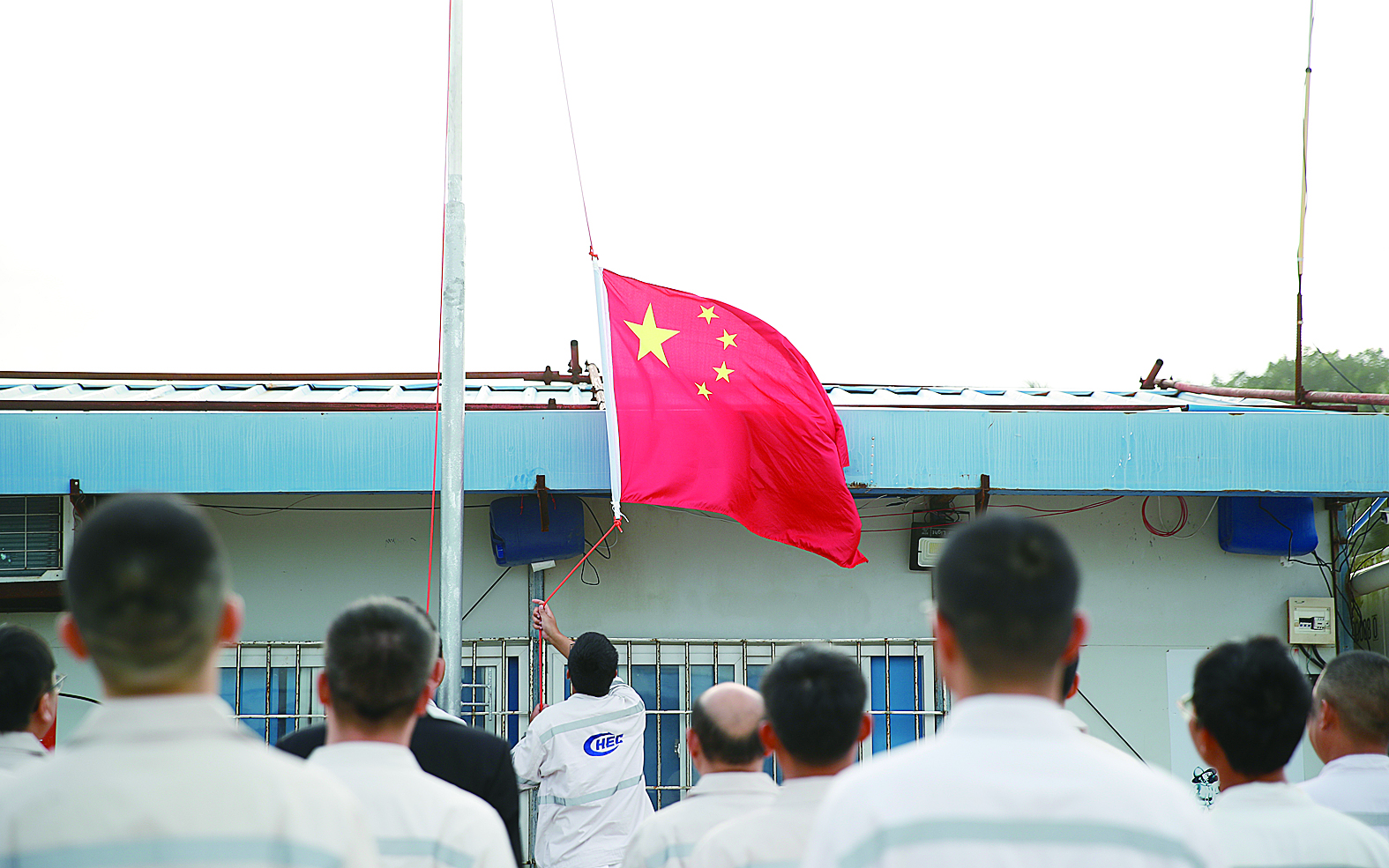 当地时间29日早晨,中国驻瑙鲁使馆复馆小组在位于瑙鲁岛西南部的临时办公地点举行升国旗仪式。