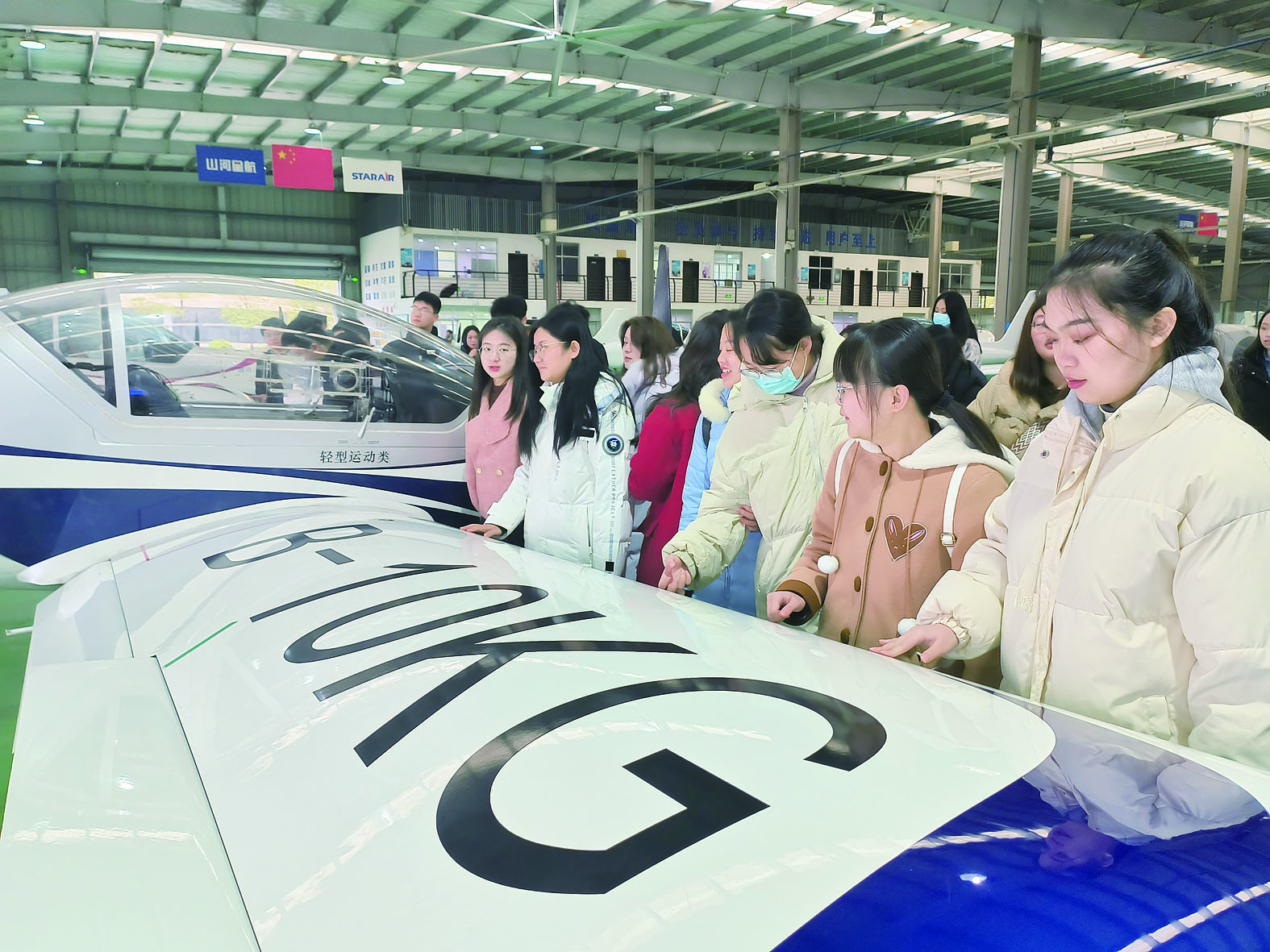 返乡大学生在芦淞航空小镇参观和打卡各式飞机。 记者/温琳 摄