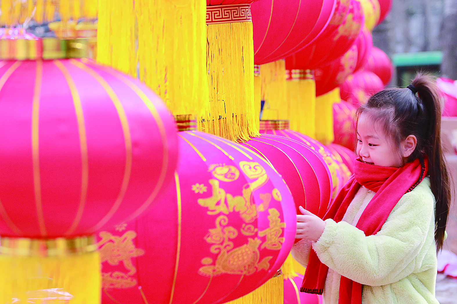 1月30日,小朋友在山东潍坊高密市年货大集上挑选红灯笼。临近春节,各地呈现出浓浓的年味,红红火火迎新春。