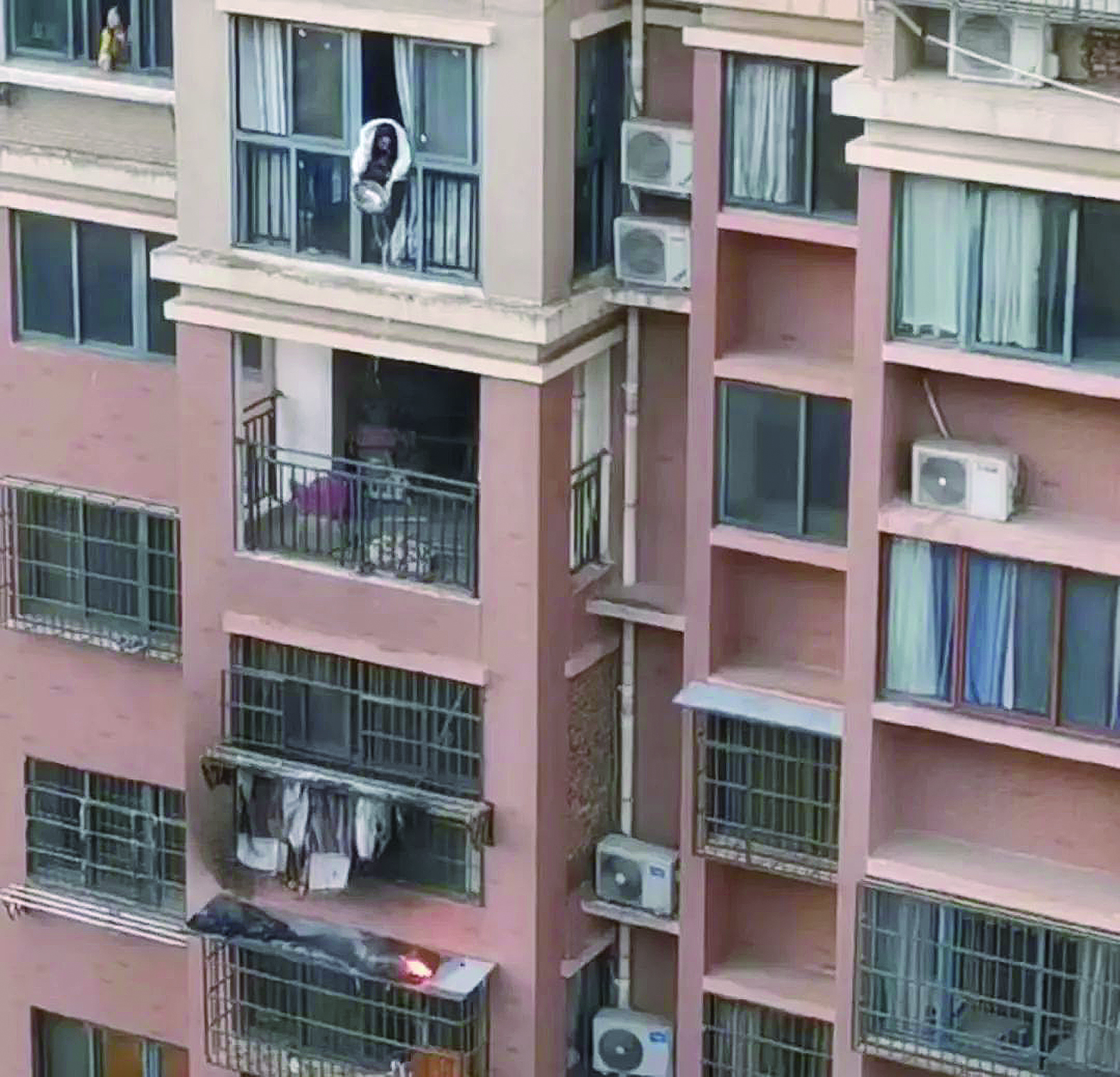 日前,株洲一居民楼阳台突发大火。对面楼的邻居见状大喊:“20楼,你们楼下着火啦!”楼上邻居听到后,从自家阳台倒下去一盆水,精准扑灭了楼下阳台上的大火。
