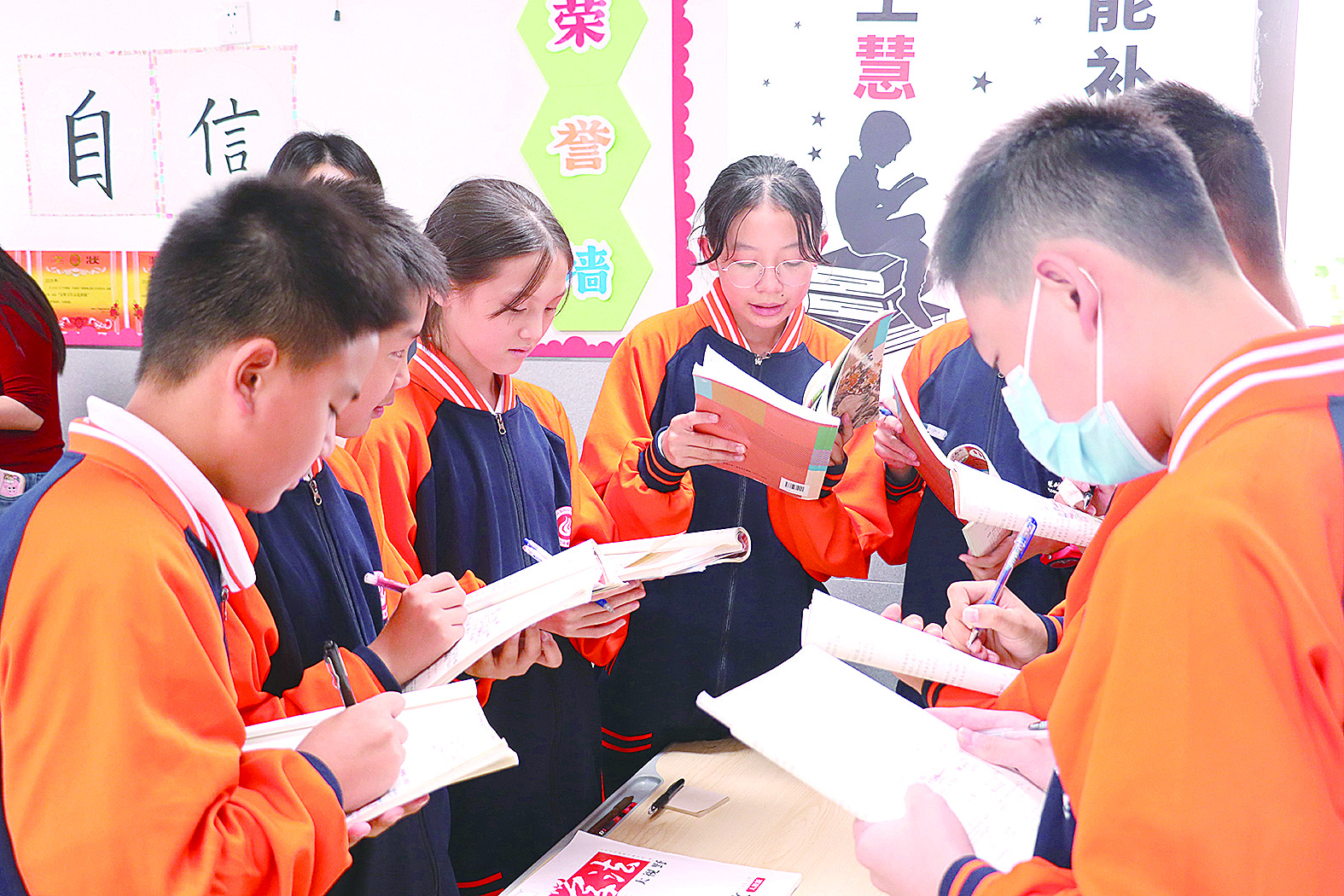 株洲二中枫溪学校初中部学生通过小组互助学习快速成长。 记者/戴凛 摄