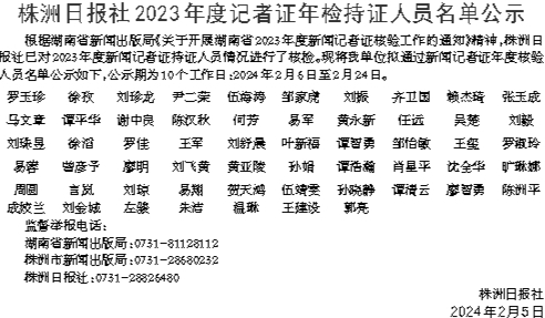 株洲日报社2023年度记者证年检持证人员名单公示
