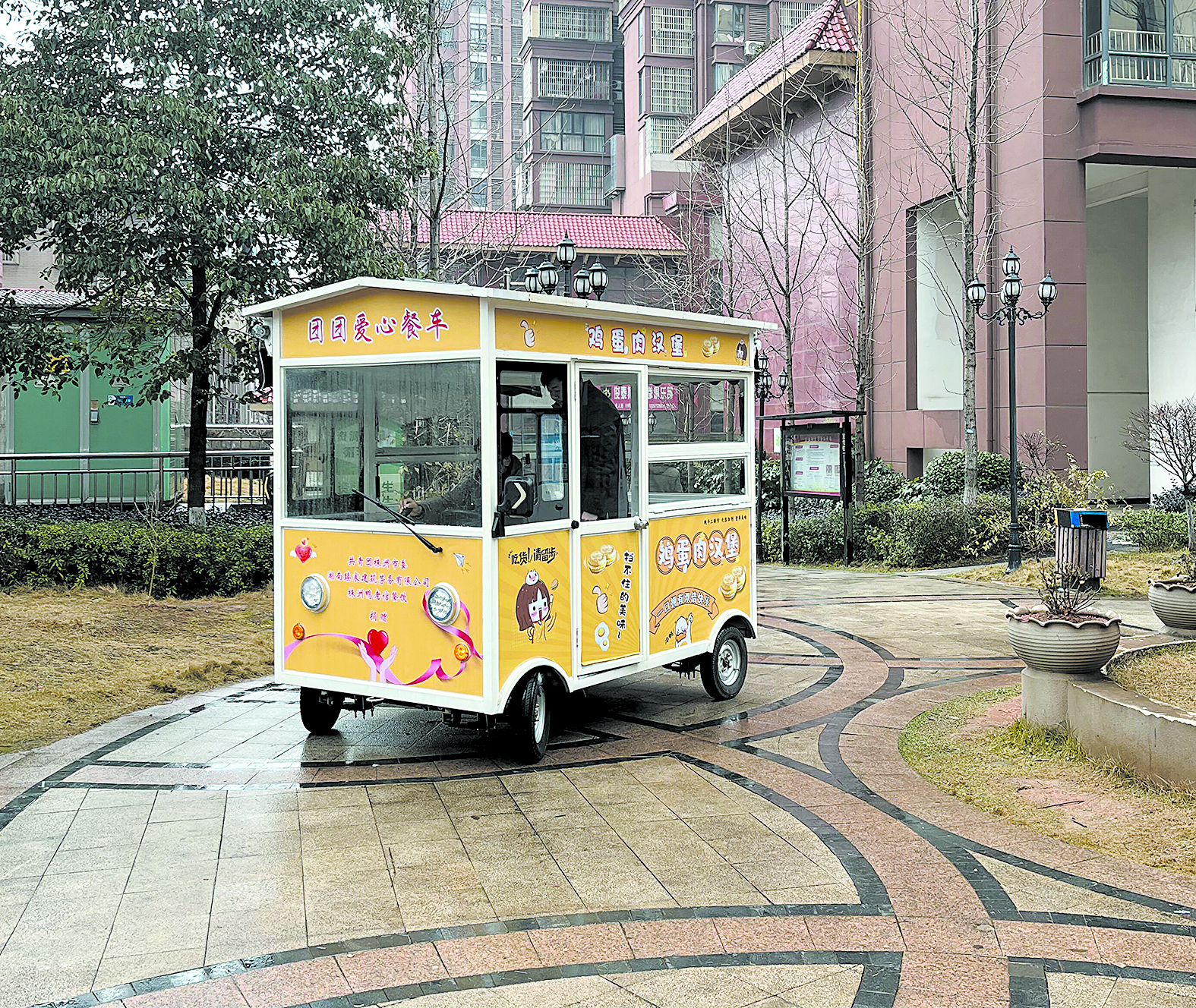 团市委在对陈康家庭情况及面临的困难进行了解时,得知了他想要一辆摆摊车的心愿,马上联合湖南臻宸建筑劳务有限公司、株洲鸭老倌餐饮店等爱心企业,为陈康定制了一辆“团团爱心餐车”,并将其送到了陈康所居住的小区。小区物业公司的负责人也表示,将帮助陈康解决摆摊车停放的场地问题。