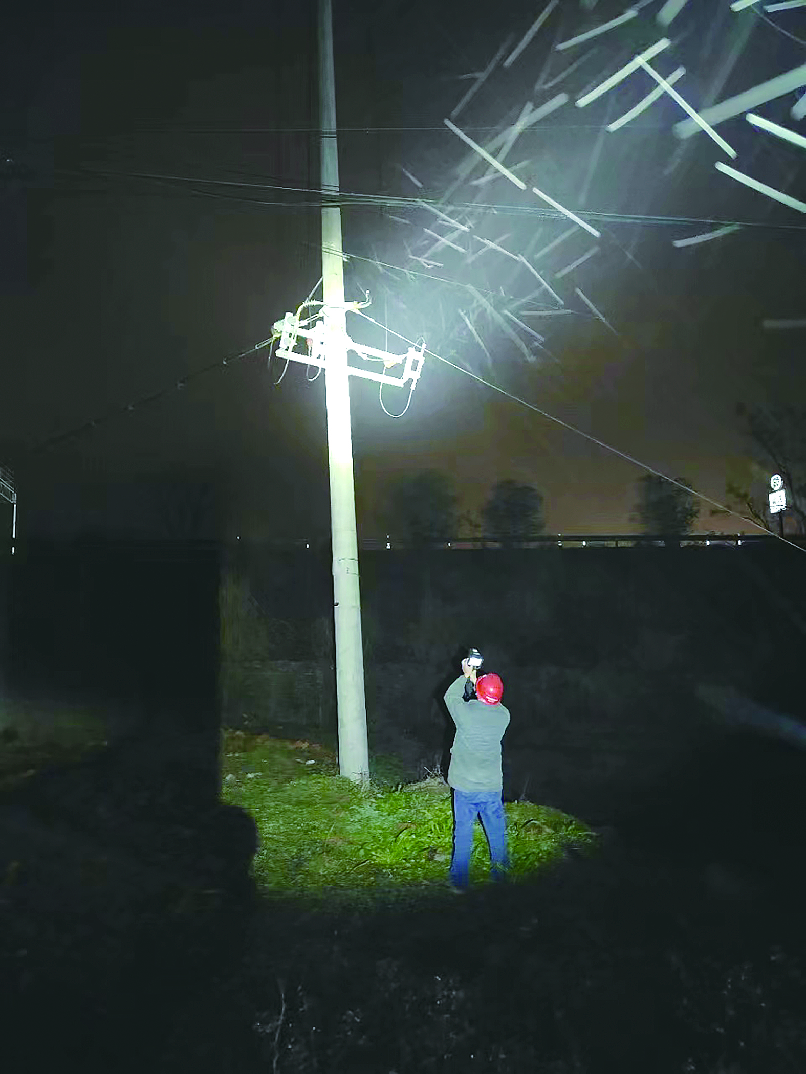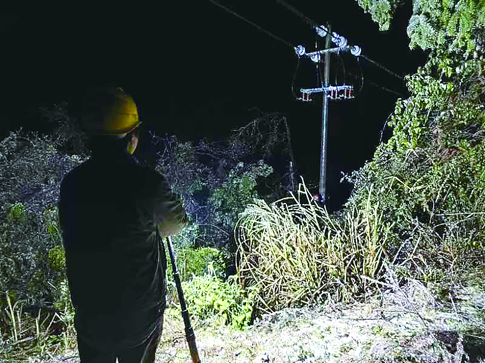 早在冰冻雨雪天气预警期,朱辉江就与乡村两级主要负责人提前进行了沟通交流,积极争取当地政府部门支持。在刚接到抢修电话后,朱辉江第一时间与广和村支部书记取得联系。2月5日晚上12点,政企两路人马顺利“会师”。朱辉江简单交代工作任务和风险提示后,几路人马各司其职,迅速进入“战斗”状态,现场汇报调度、做好安措后第一时间开展抢修。山区环境复杂,夜晚光线暗淡,朱辉江始终坚持守在现场指挥坐镇指挥抢修工作,每一个风险点都亲自把关不留隐患,并同步电话指挥其他故障点的复电工作。经过4个小时鏖战,26基电杆的线路覆冰全面清除,辖区恢复了供电。