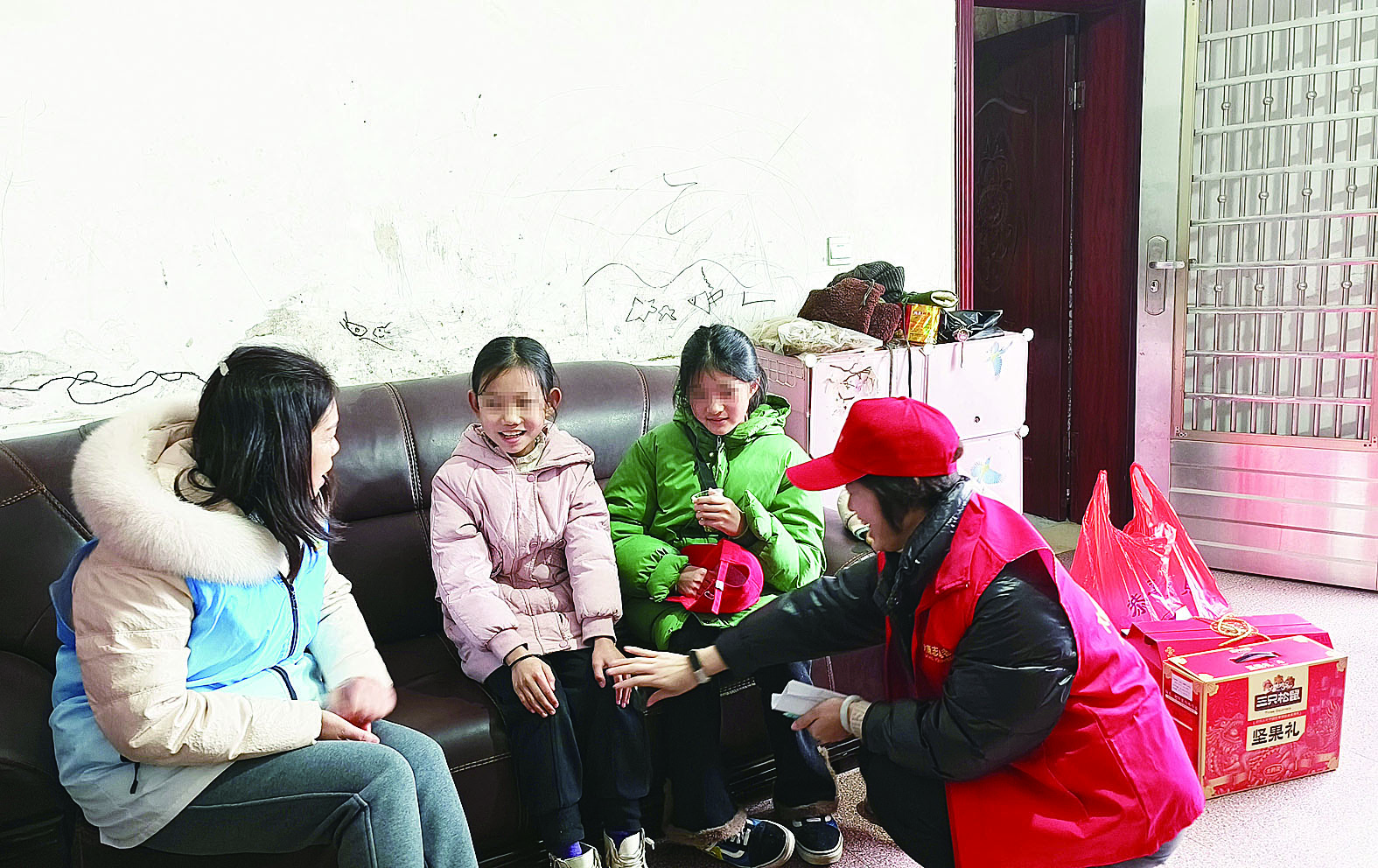 志愿者到困境儿童家里了解情况并送上“压岁红包”。记者/杨如 摄