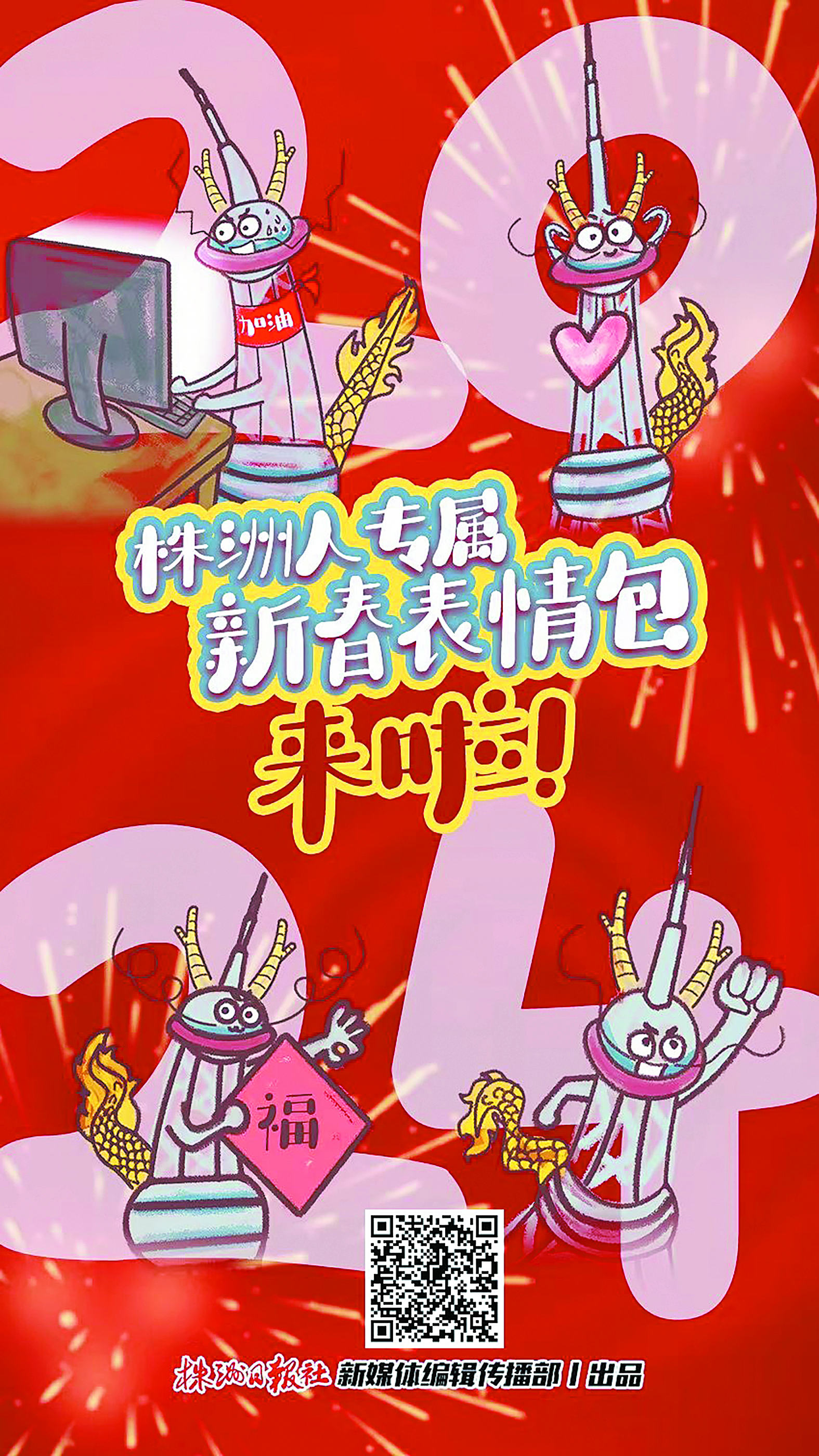 过了腊月二十,农历新年的脚步就真的近了!株洲日报社的小编特意为大家制作了一组甲辰龙年株洲人专属新春表情包。这组表情包以株洲最具代表性的神农塔为原型,结合龙年元素,动图鲜活有趣,大家不妨扫一扫下载。