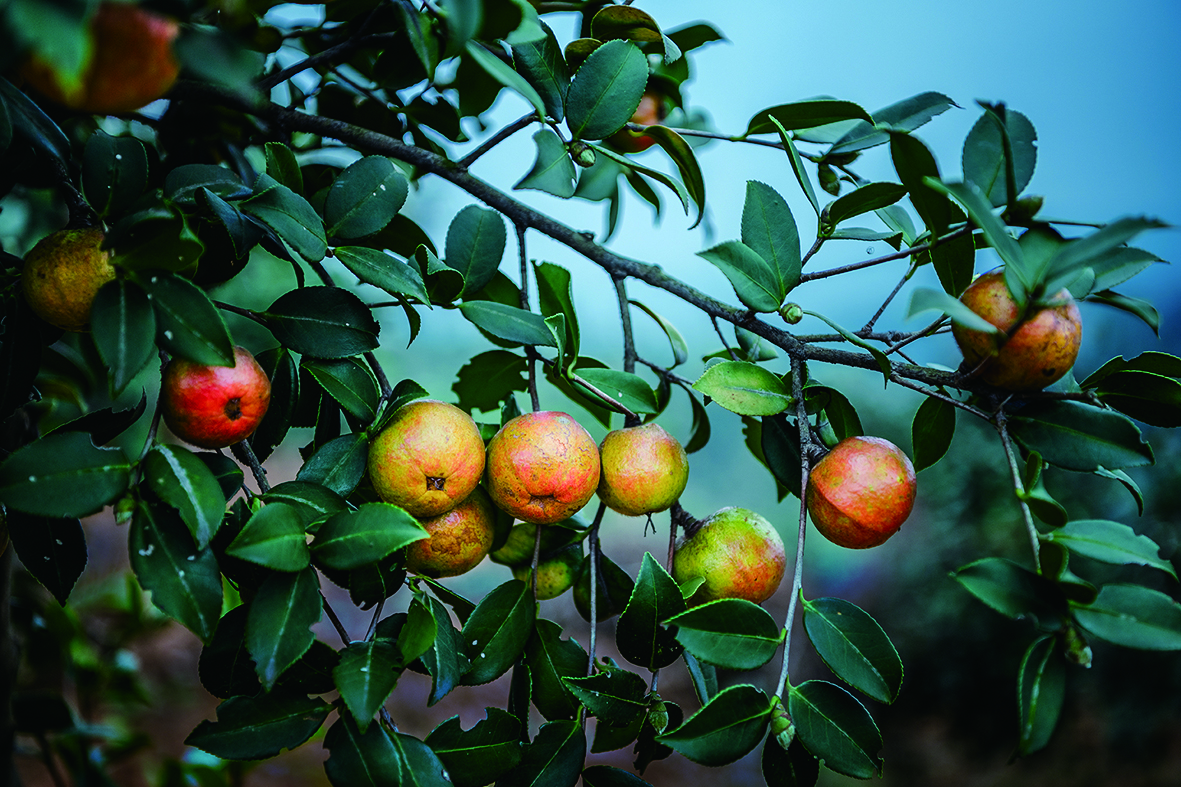 渌口区朱亭镇金福村油茶基地内,泛红的油茶果挂满枝头。 咏洲 摄