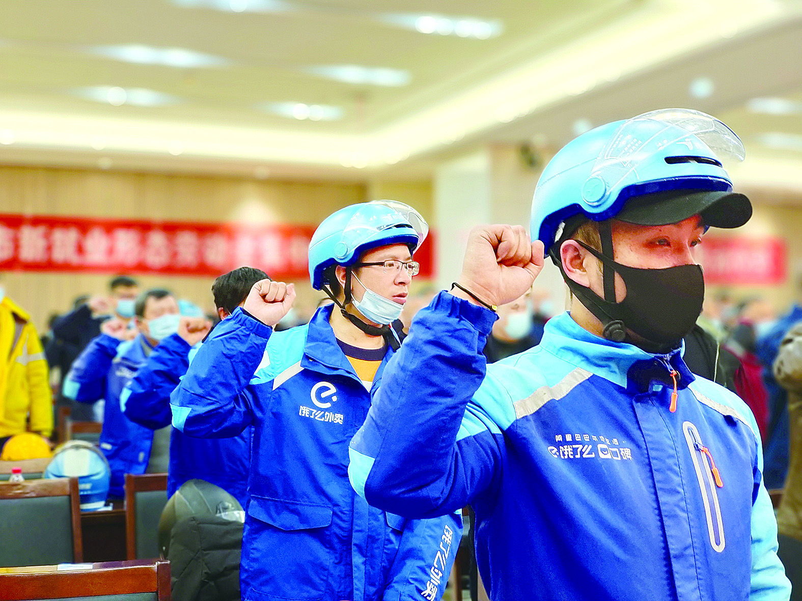 快递小哥集中加入工会组织。 全媒体记者/何春林 摄