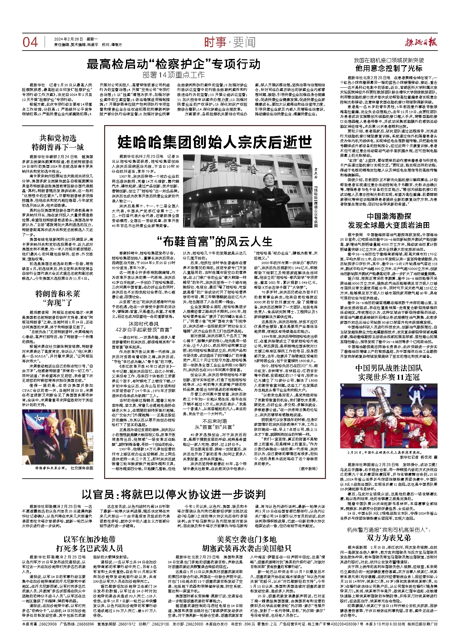 据新华社 记者2月25日从最高人民检察院获悉,最高检近日印发《“检察护企”专项行动工作方案》,决定自2024年2月至12月开展“检察护企”专项行动。