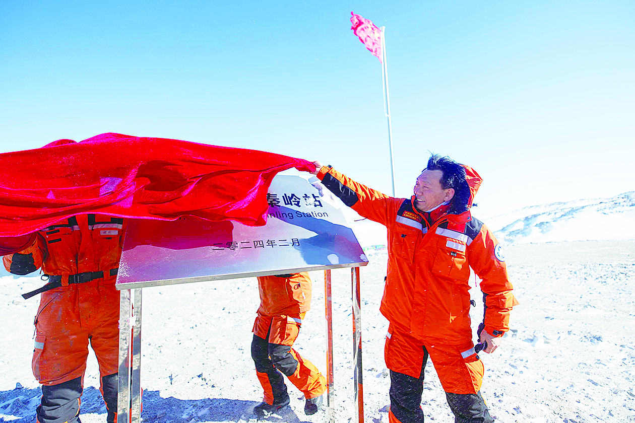 2月7日在中国南极秦岭站拍摄的揭牌仪式。 新华社记者 周圆 摄