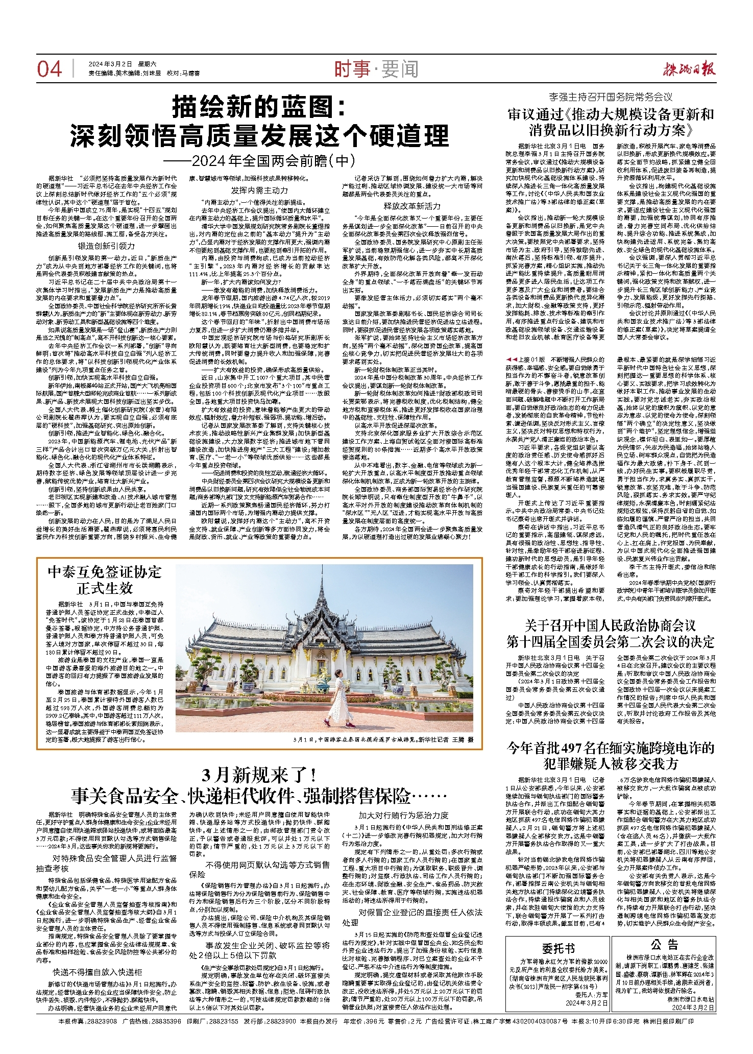 审议通过《推动大规模设备更新和 消费品以旧换新行动方案》