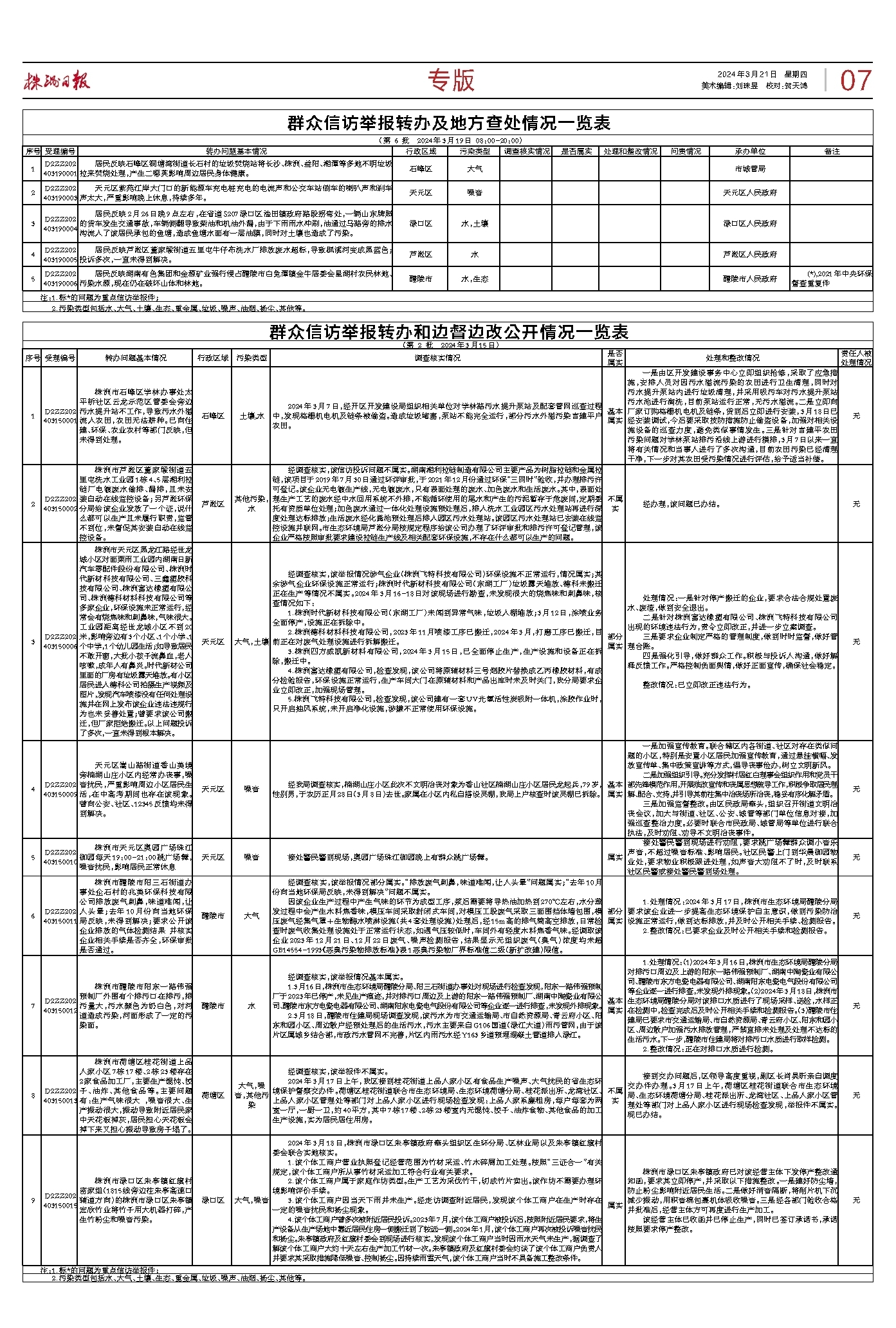 群众信访举报转办和边督边改公开情况一览表