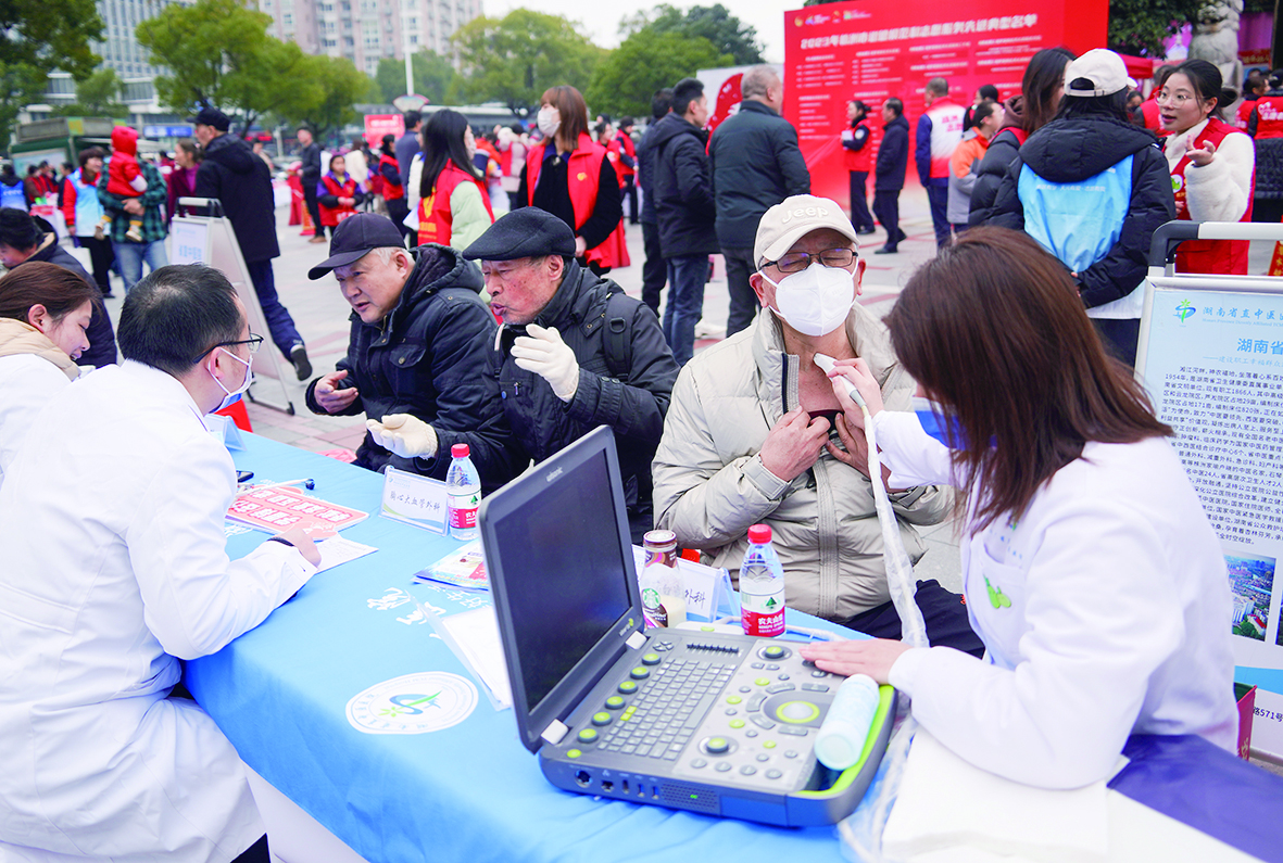 学雷锋志愿服务活动月活动现场,志愿者在公益集市现场为市民进行医疗服务。 株洲日报全媒体记者/刘震 摄