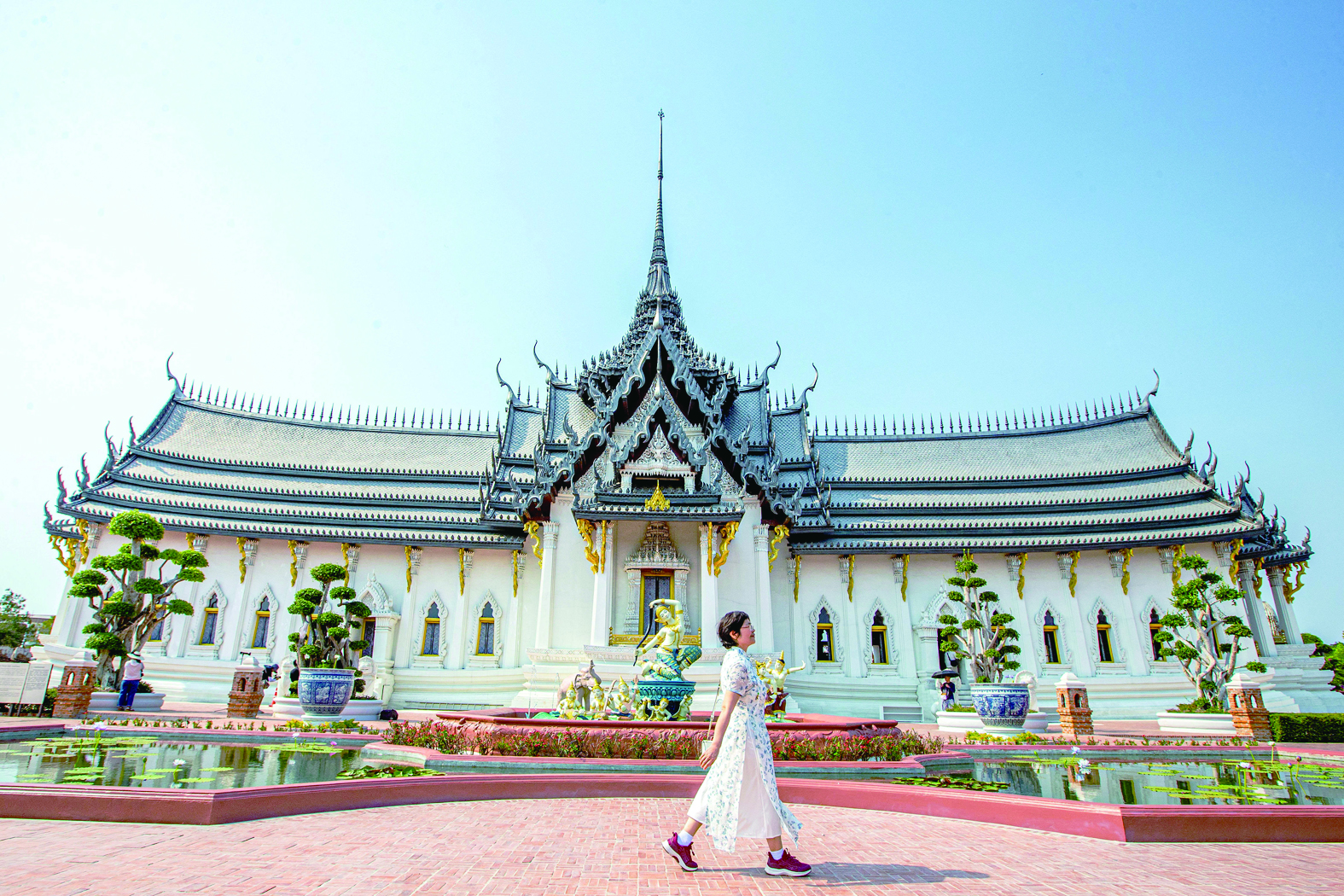 3月1日,中国游客在泰国北榄府暹罗古城游览。新华社记者 王腾 摄