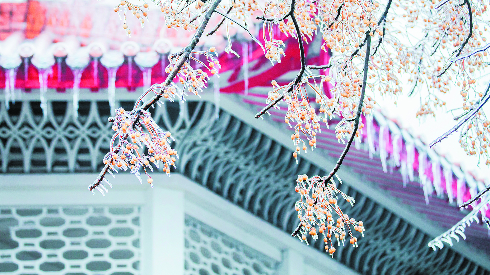 “檐冰残雪”——摄于蔷薇园