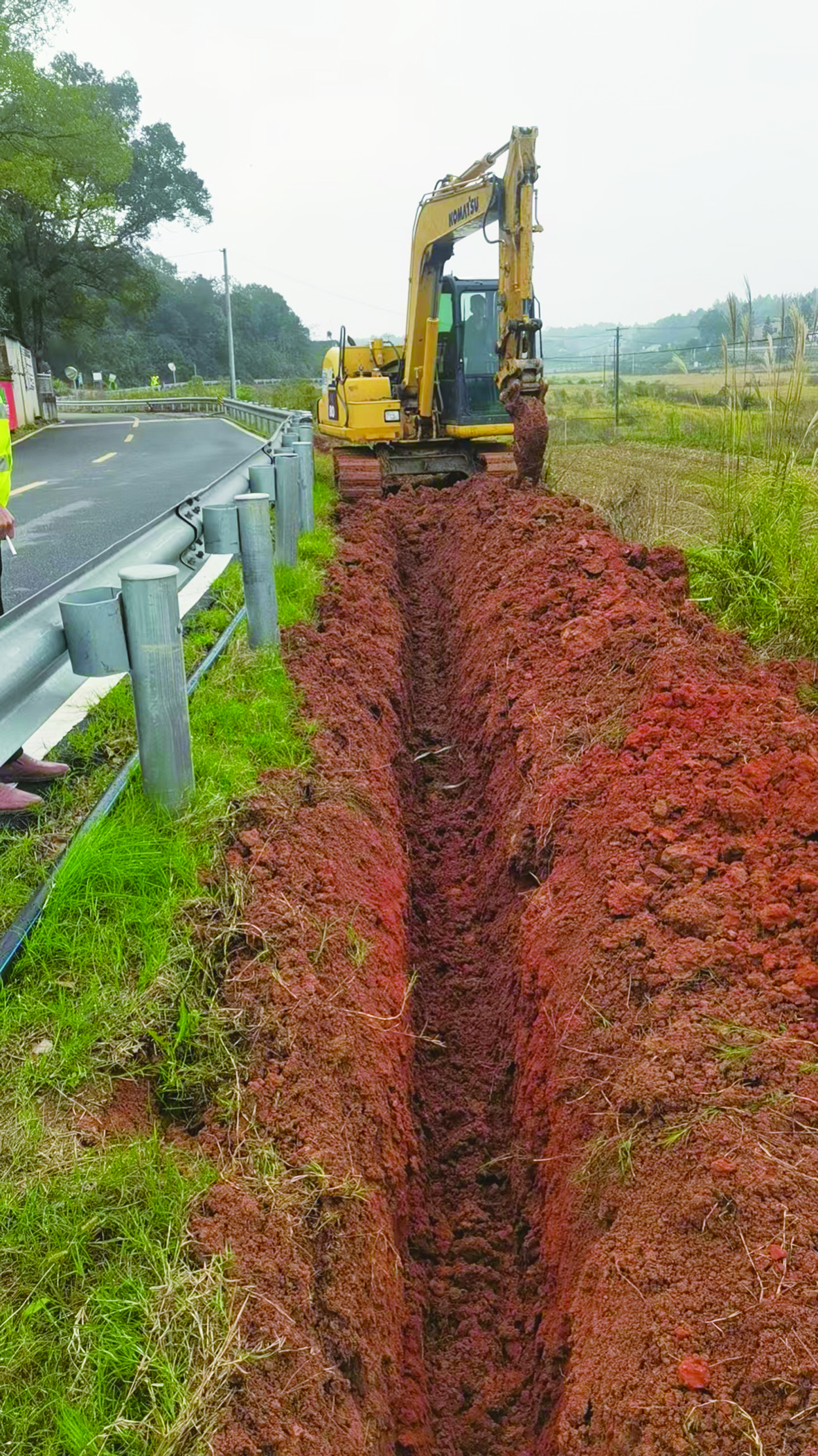 挖掘机正在实施预埋坑道作业。 三门镇 政府供图