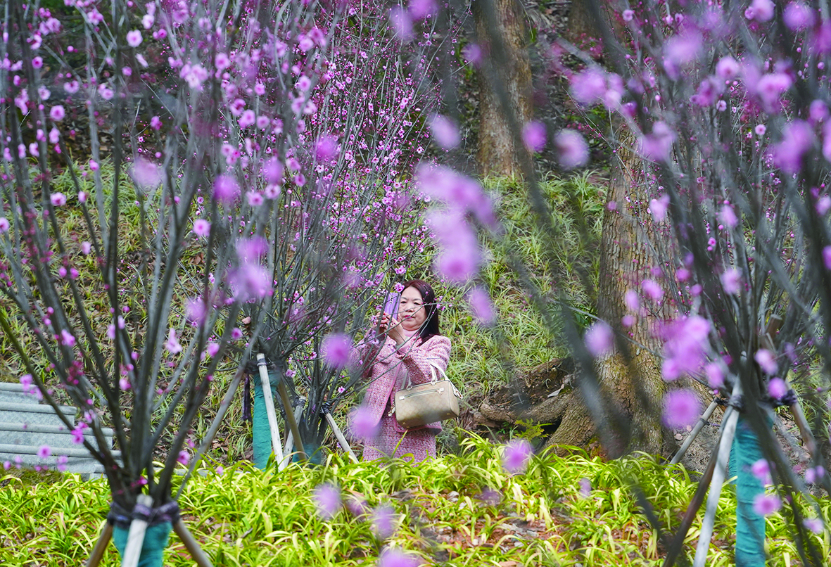 3月2日,久雨初晴,我市迎来久违的阳光。石峰公园盛开的一树树梅花,吸引了不少市民前来观赏、拍照,尽情捕捉春光烂漫的城市风情。
