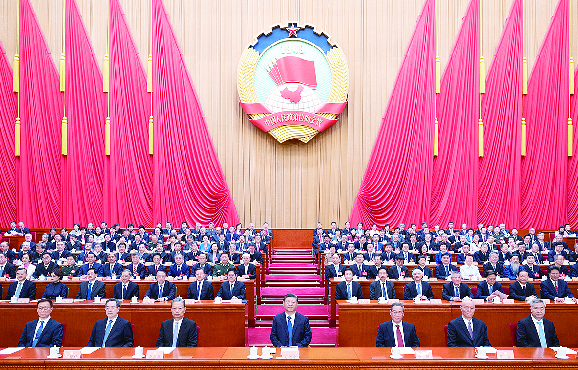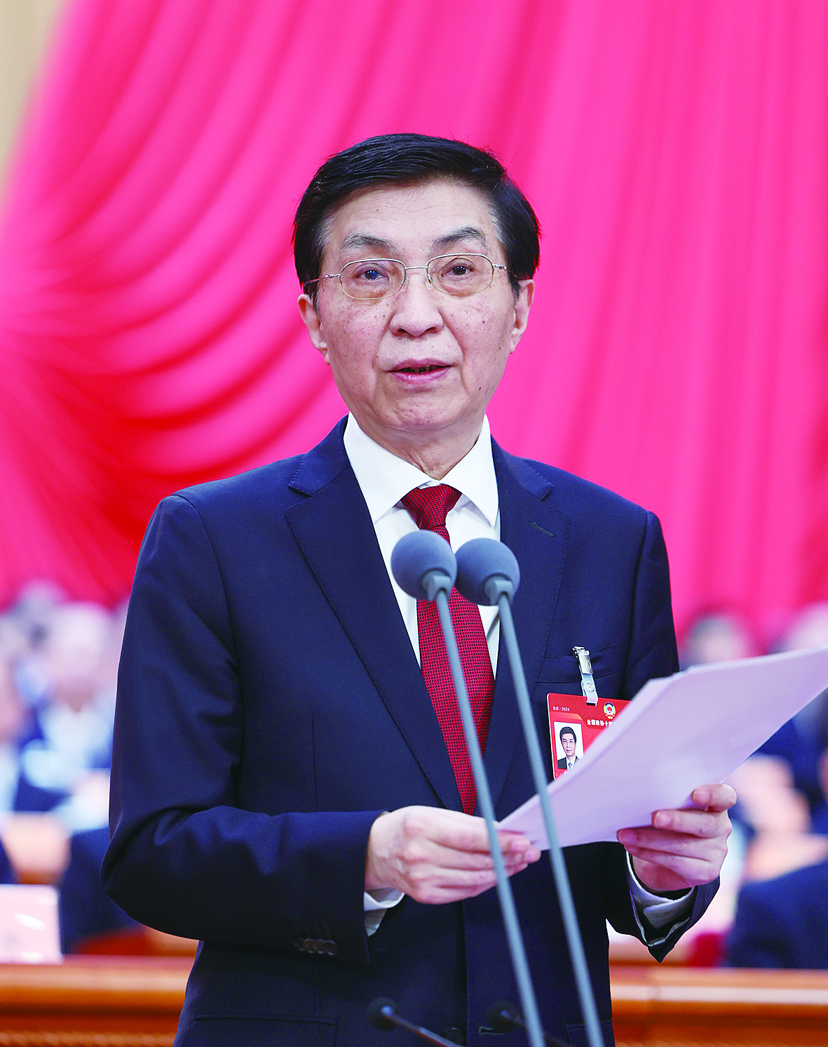 全国政协主席王沪宁主持闭幕会并讲话。 新华社记者 鞠鹏 摄