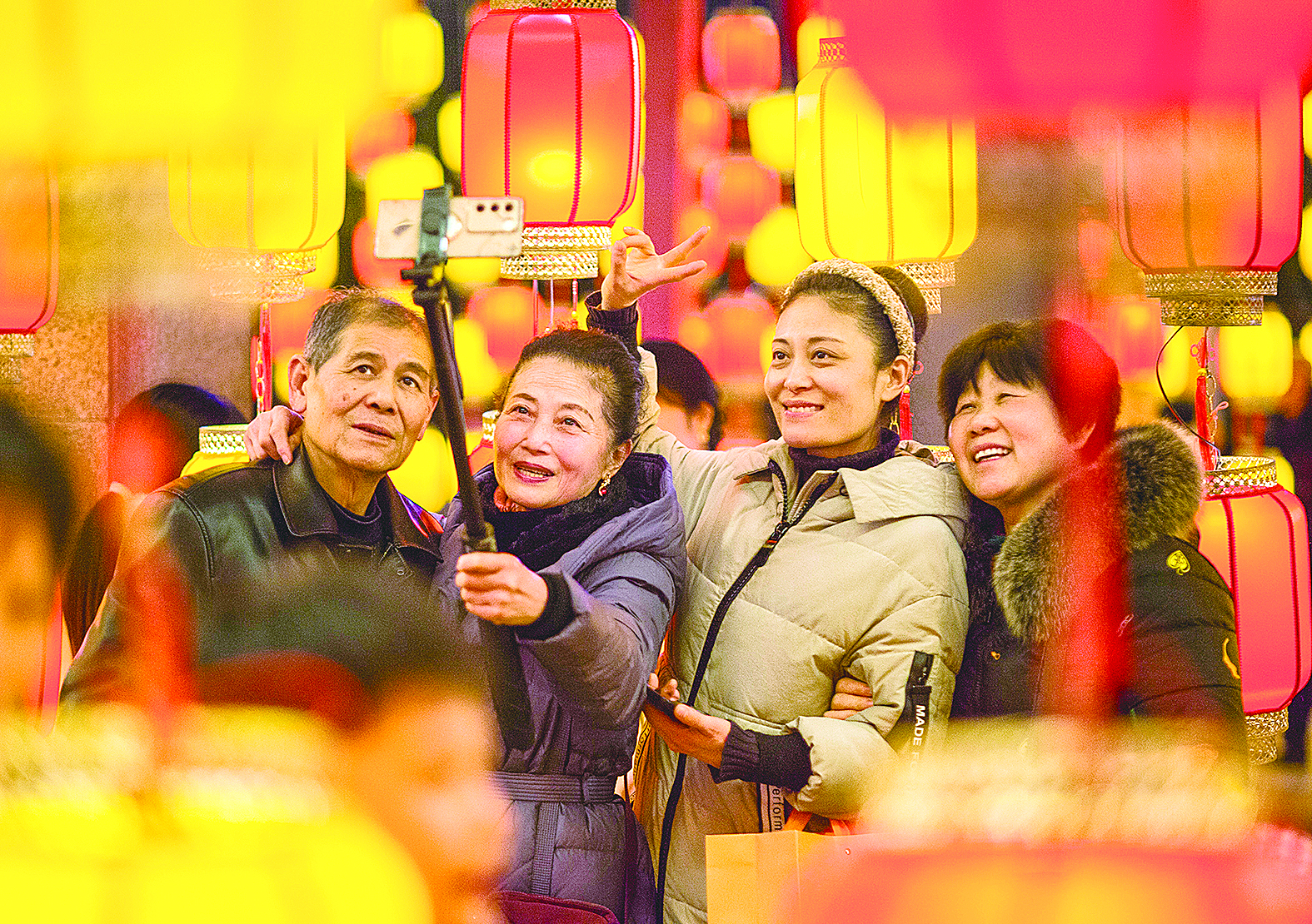 “花灯长街下,拍下最温情的笑容”。 伍海涛/摄