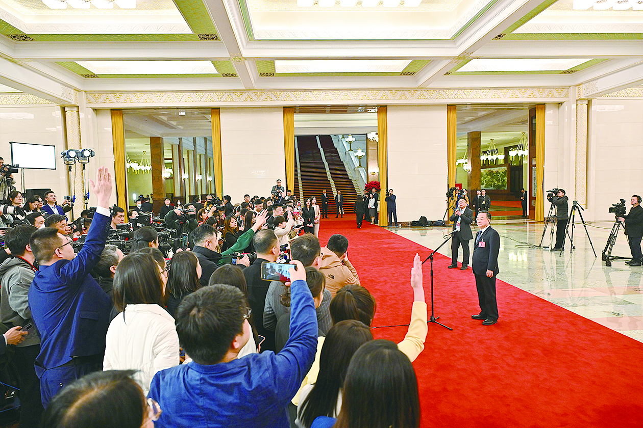 3月5日,第十四届全国人民代表大会第二次会议首场“部长通道”集中采访活动在北京人民大会堂举行。 新华社记者 李鑫 摄