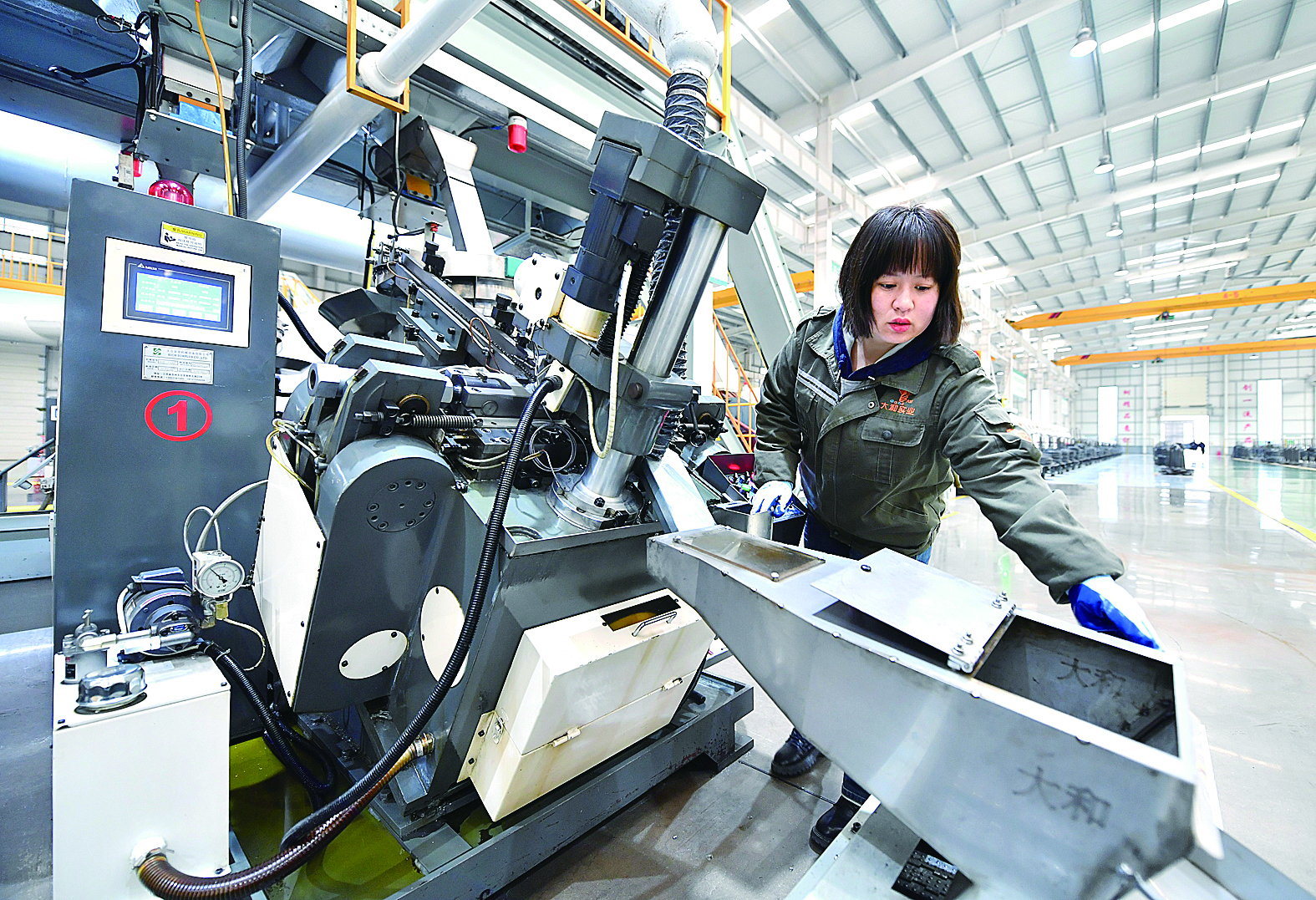 新春伊始,河北省邯郸市永年区各大紧固件生产企业纷纷开足马力,加紧生产,赶制出口订单,力争开门红。近日,在邯郸市永年区一家紧固件生产企业,工人在数字化智能生产车间内工作。新华社发