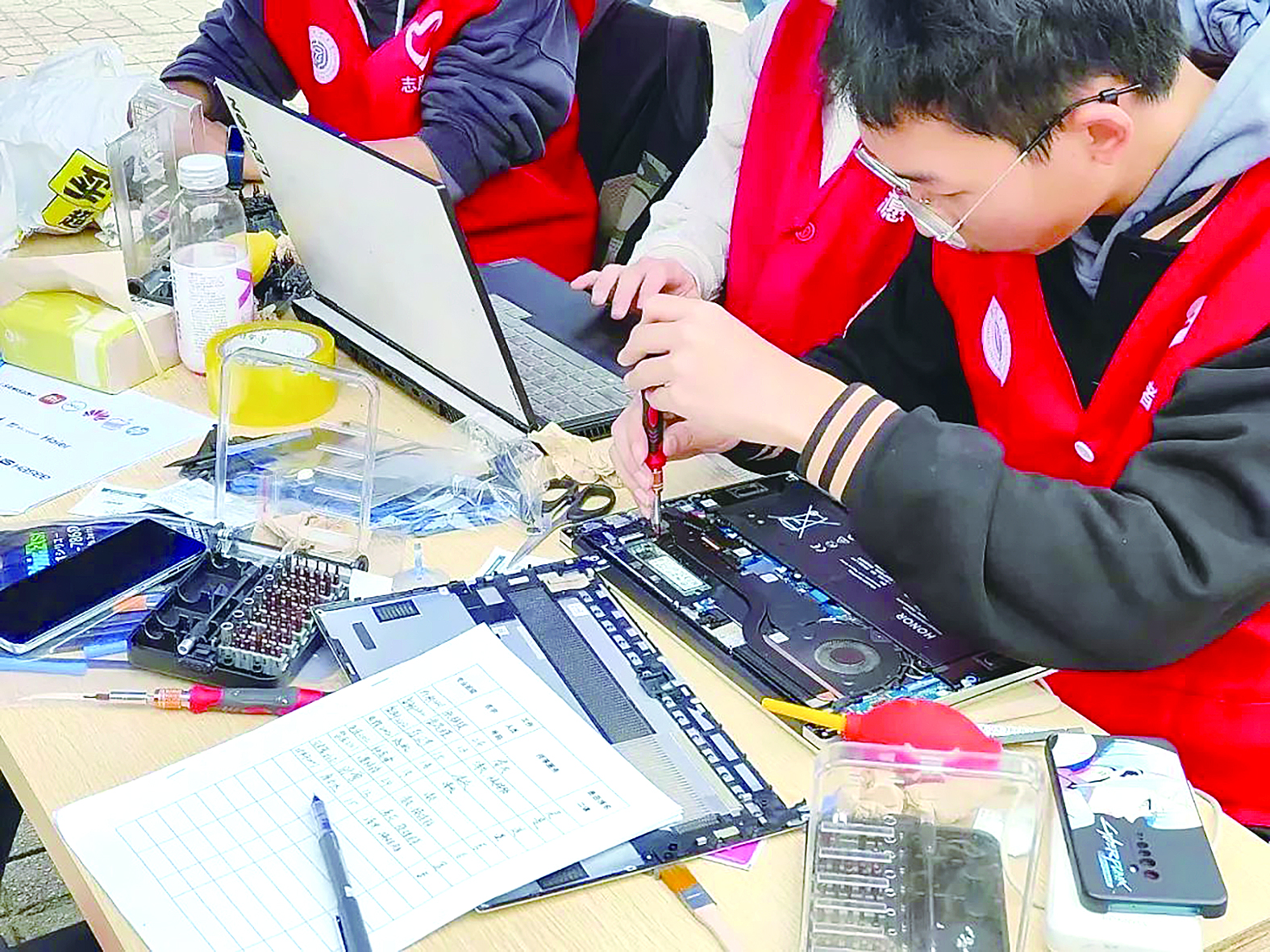 近期,湖南工业大学组织开展“学雷锋·爱工大”志愿服务文化活动,350余名青年志愿者利用休息时间,走出校门、走进社区,进行服务活动,如计算机学院志愿者开展给电脑清灰、手机贴膜等服务活动,获得大家的称赞与好评。