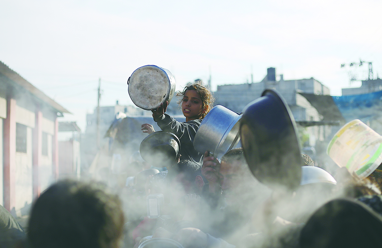 3月14日,人们在加沙地带南部城市拉法领取救济食物。 新华社发(哈立德·奥马尔 摄)
