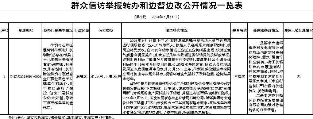 群众信访举报转办和边督边改公开情况一览表