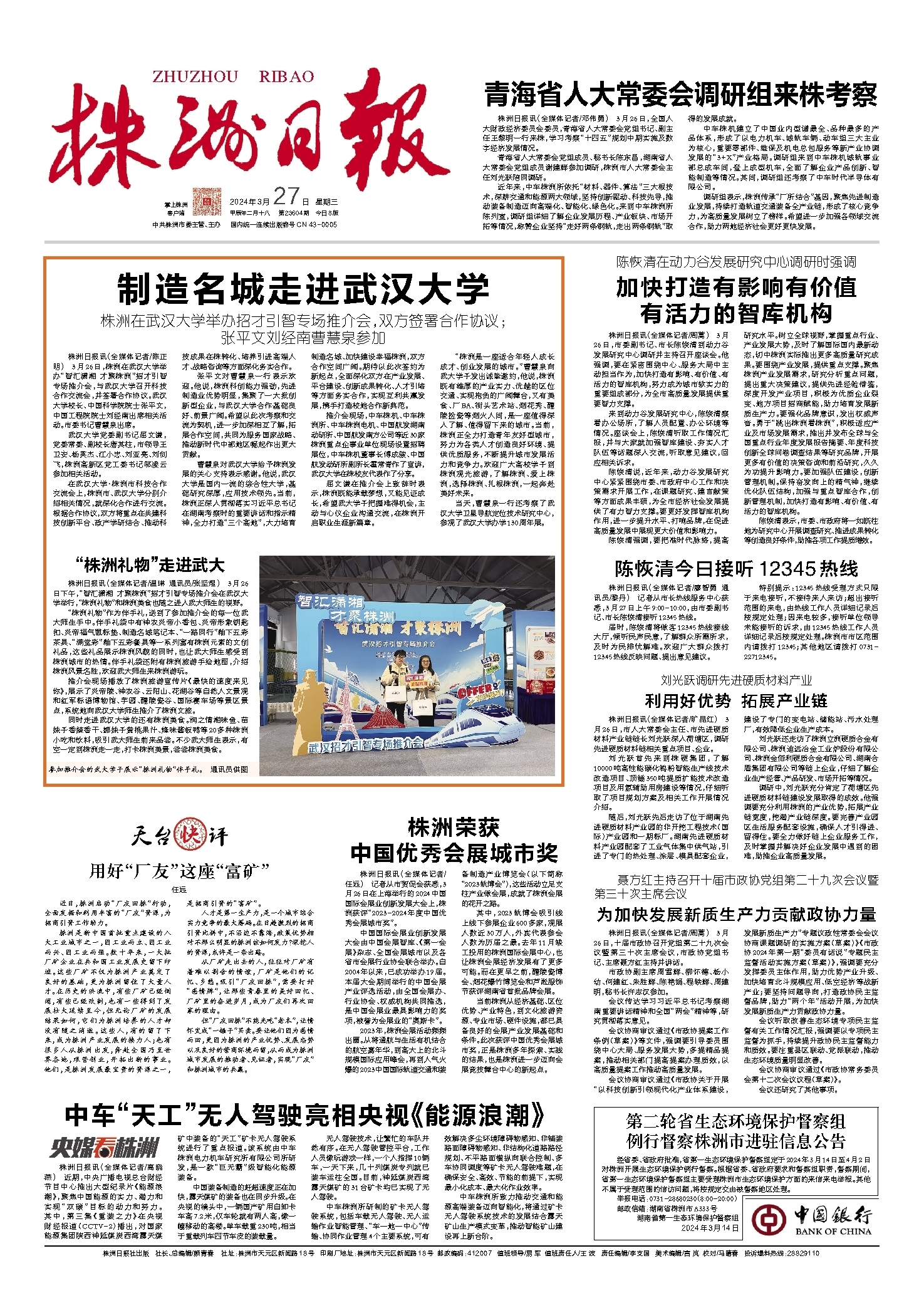 张平文对曹慧泉一行表示欢迎。他说,株洲科创能力强劲,先进制造业优势明显,集聚了一大批创新型企业,与武汉大学合作基础良好、前景广阔。希望以此次考察和交流为契机,进一步加深相互了解,拓展合作空间,共同为服务国家战略、推动新时代中部地区崛起作出更大贡献。