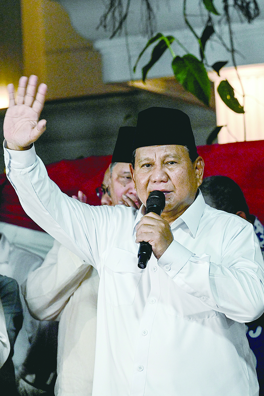 3月20日,在印度尼西亚雅加达,普拉博沃在媒体记者和支持者到场的集会上讲话。 新华社发(阿贡 摄)