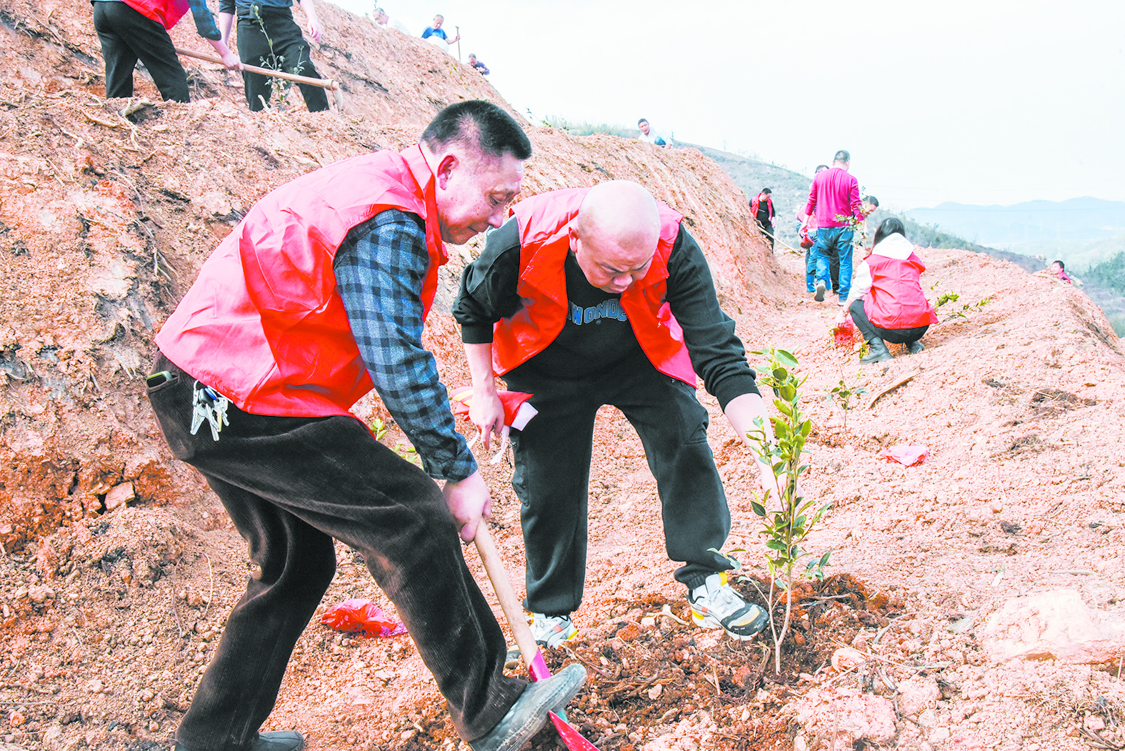 近日,市总工会成立了机关志愿服务队,并组织队员进行了义务植树。挖坑、放树苗、施肥、浇水……志愿者们撸起袖子,分工合作,将一棵棵小树苗栽种在石峰区铜塘湾街道长石村的山坡上。