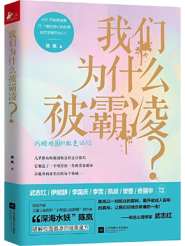 《我们为什么被霸凌?》 作者:陈岚 内容简介: 《我们为什么被霸凌?》经过400天田野调查,呈现了15个触目惊心的校园霸凌故事,横跨小学、初中、高中、大学四个阶段,涵盖武力霸凌、流言霸凌、性别霸凌、群体霸凌、校园霸凌等多种形式,揭示了99%的霸凌事件都可归因于家庭教育。本书用写实的笔触,将你遭遇过的、没遭遇过的、想得到的、想不到的霸凌事件做了全面且深刻的解剖,并为学校、家长和孩子提出了具体可行的解决方案。