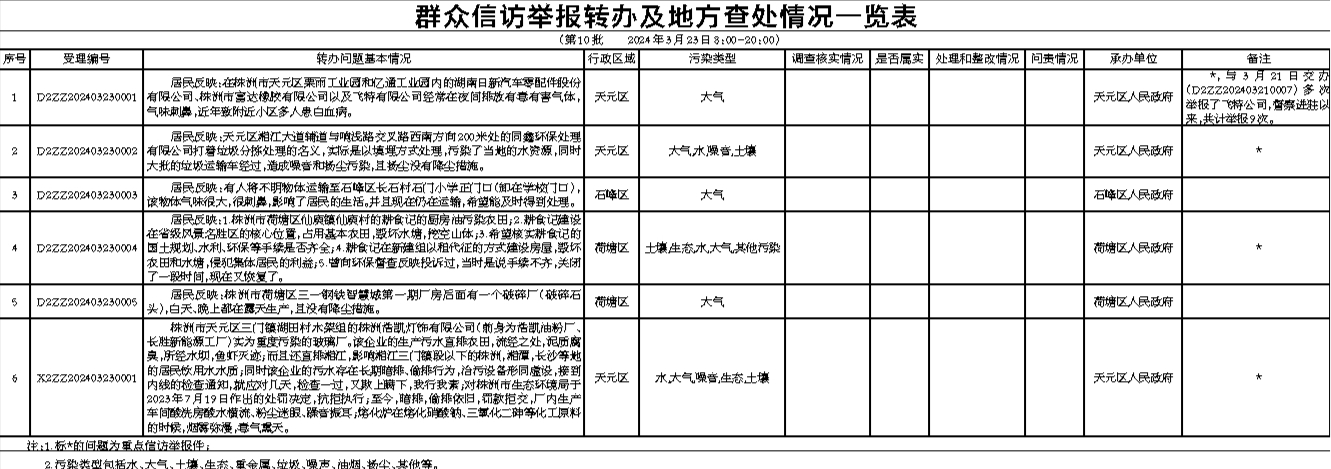 群众信访举报转办及地方查处情况一览表