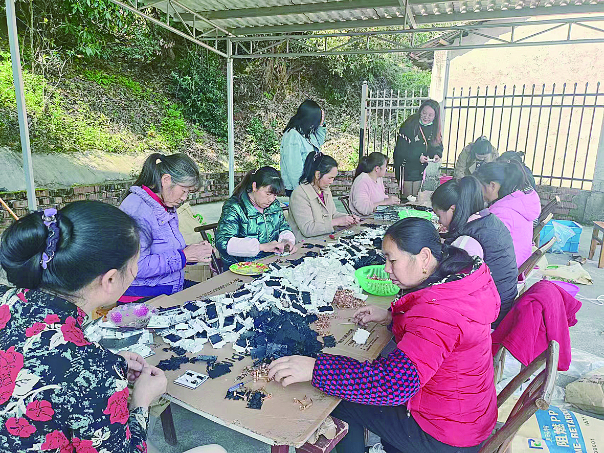 “我们约定在谁家的晒谷坪等空地上,用木板简单搭个台子,大家聚在一起工作,劳动时间在唠家常中一下子就过去了。”谭秀娥说,“3月24日,村里领回4000个需要组装的电器开关,一天就完成了。”