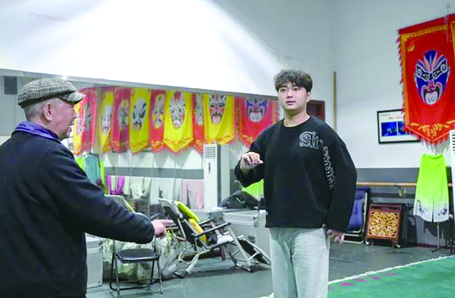 刘宇(右一)在练习花鼓戏唱段