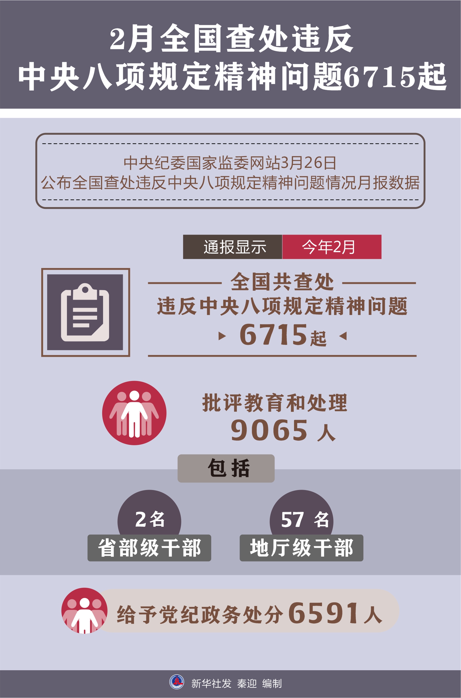 2月全国查处违反中央八项规定精神问题6715起