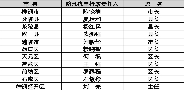 2024年株洲市市、县防汛抗旱行政责任人名单