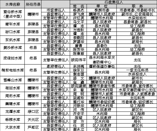 2024年株洲市中型水库防汛抗旱行政责任人名单