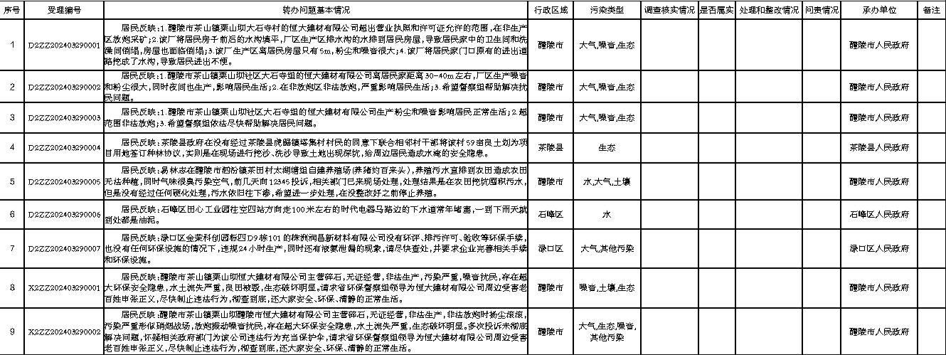 注:1.标*的问题为重点信访举报件;2.污染类型包括水、大气、土壤、生态、重金属、垃圾、噪声、油烟、扬尘、其他等。