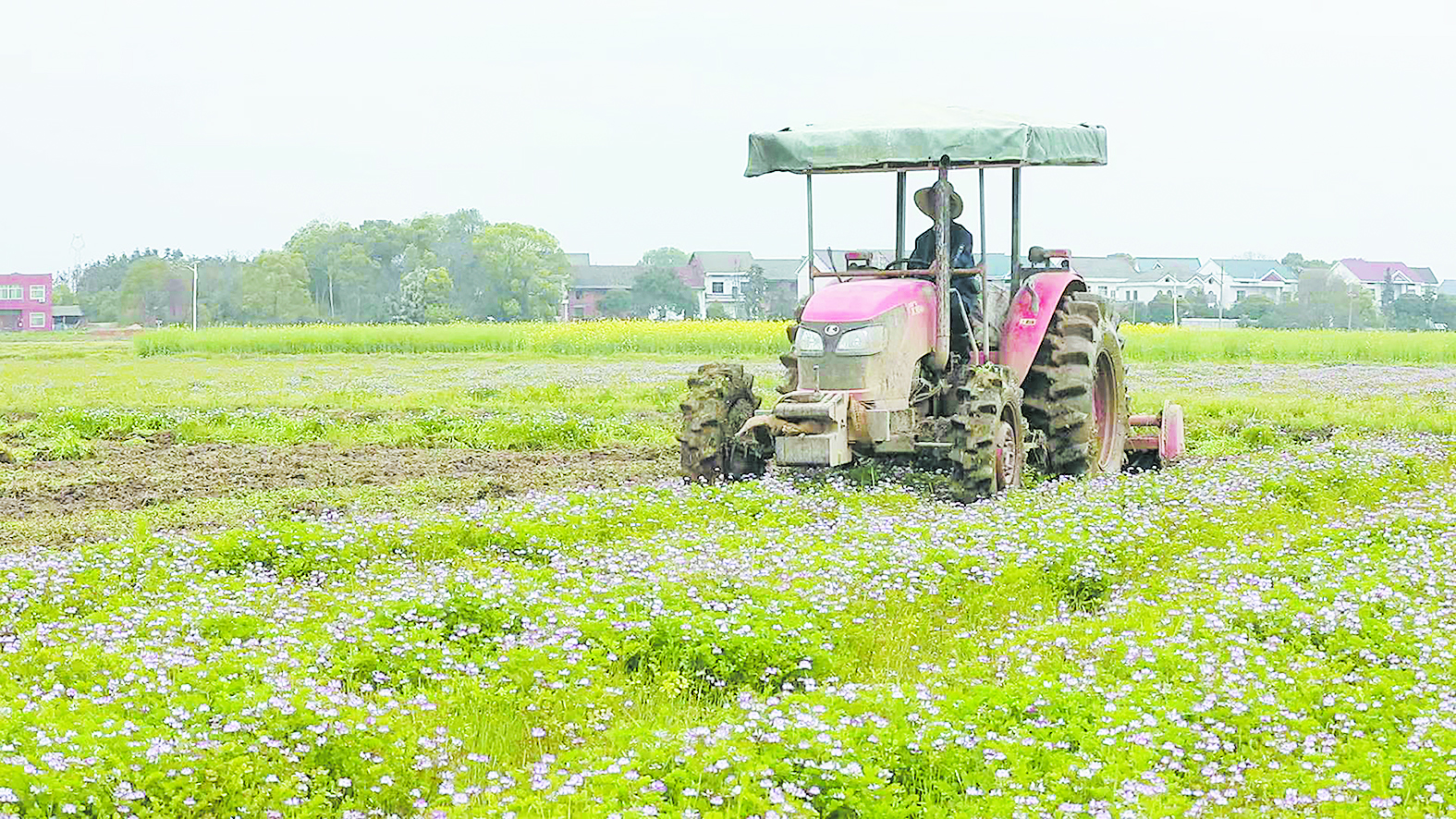 翻耕机将紫云英化作春泥。 通讯员/刘卫红 摄